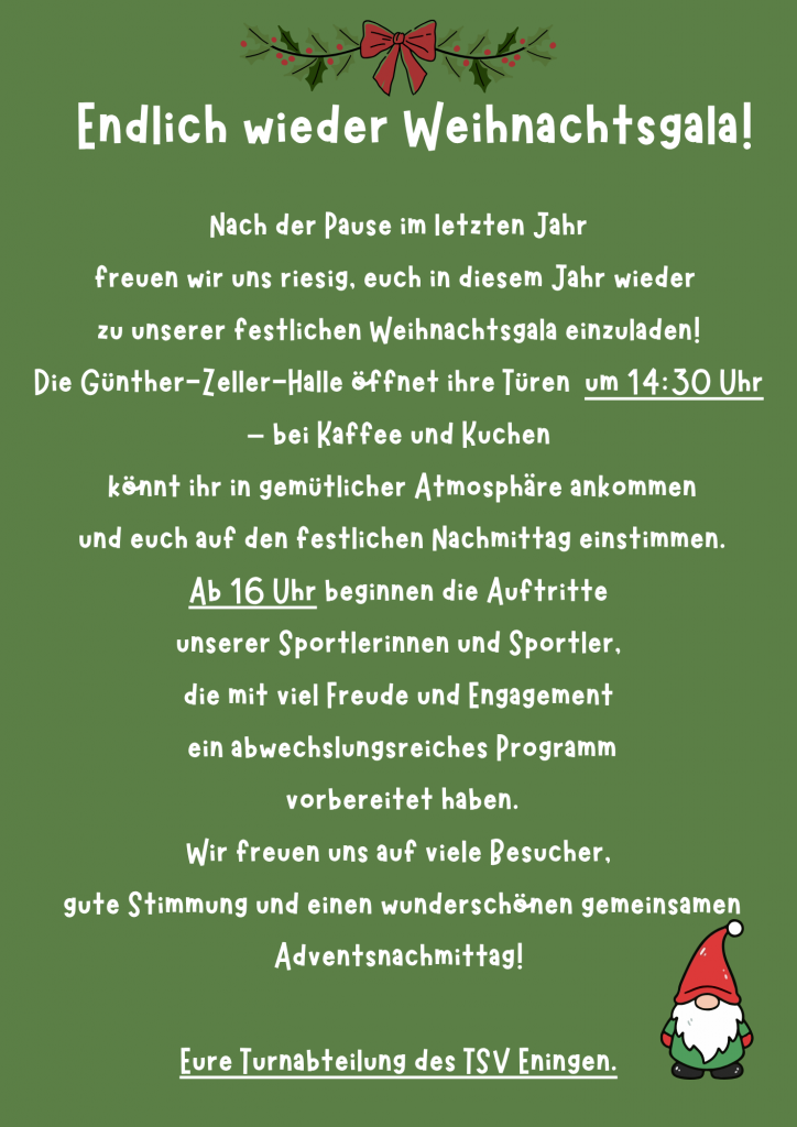 Herzlich willkommen beim TSV 1848 Eningen u.A. e.V. peb2 – Das Sportvereinszentrum am Albtrauf Hier gehts zum Sportvereinszentrum am Albtrauf Weihnachtsgala 2025